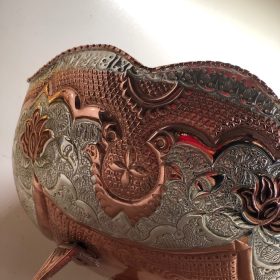 این محصول منحصر به فرد توسط هنرمندان مس پیراسته تولید شده است جنس زیر کار مس است و دارای آبکاری